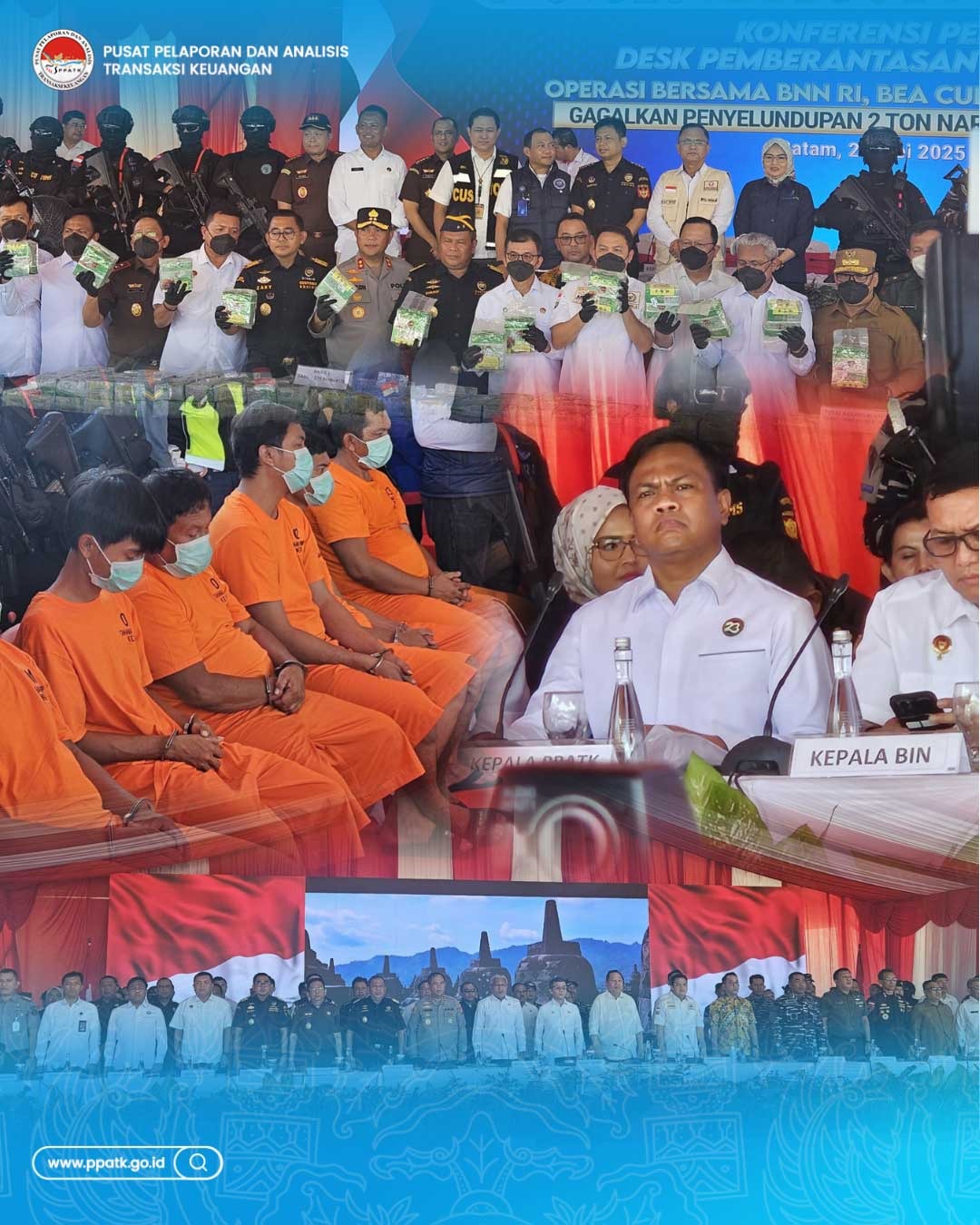 BATAM, 26 Mei 2025 , Sebuah prestasi besar kembali ditorehkan bangsa Indonesia dalam perang melawan narkotika. Badan Narkotika Nasional (BNN) RI, belerjasama dengan Pusat Pelaporan dan Analisis Transaksi Keuangan (PPATK), Direktorat Jenderal Bea dan Cukai, TNI Angkatan Laut, dan Polda Kepulauan Riau, berhasil menggagalkan penyelundupan dua ton sabu, salah satu tangkapan narkotika terbesar dalam sejarah Indonesia.
