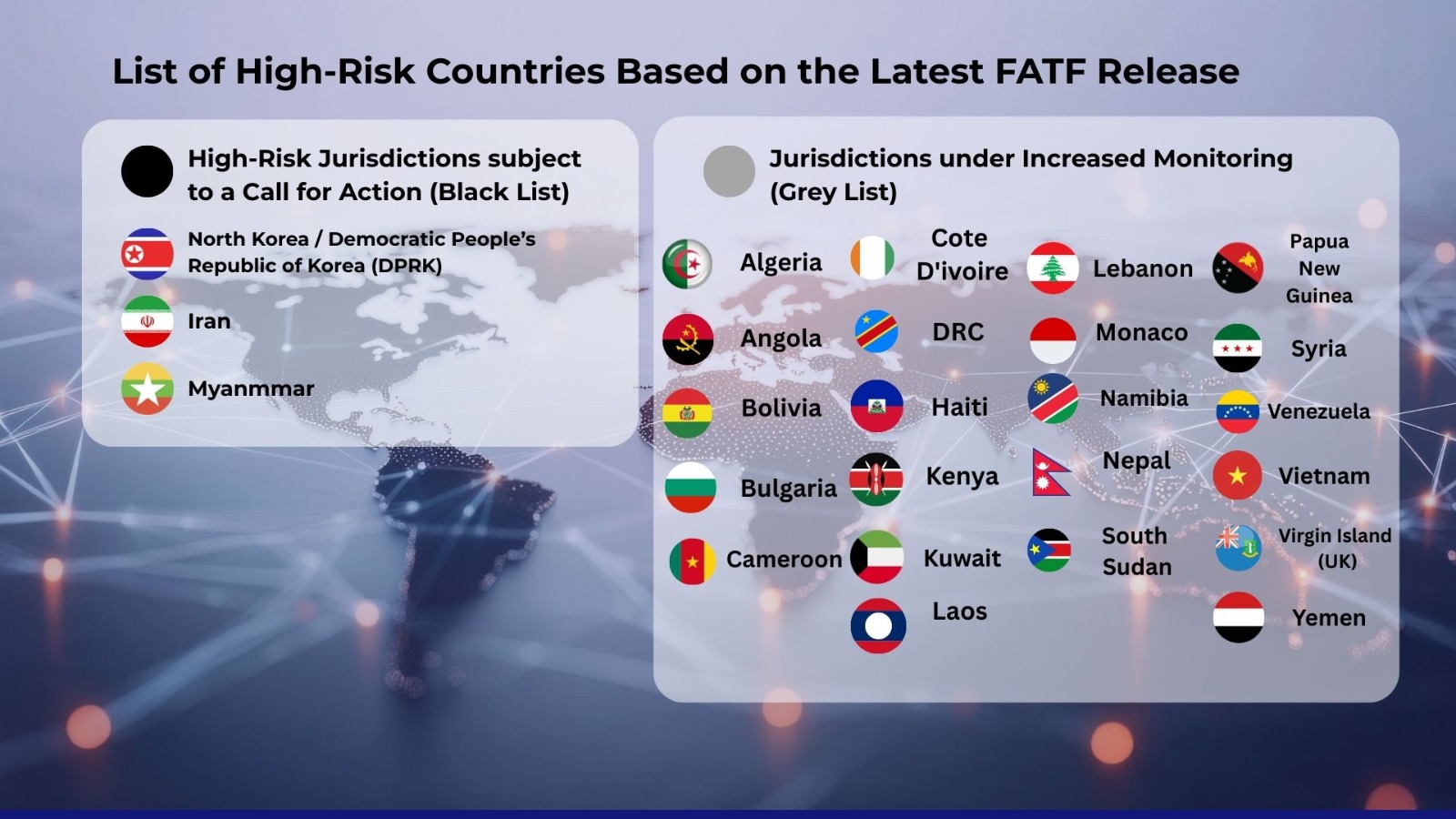 Sidang Pleno FATF pada Februari 2026 menambahkan 2 (dua) negara baru ke dalam Jurisdictions Under Increased Monitoring (grey list) yaitu Kuwait dan Papua New Guinea sehingga terdapat total 22 (dua puluh dua) negara dalam Grey List yang ditulis secara alfabetik dan internasional, yaitu Algeria, Angola, Bolivia, Bulgaria, Cameroon, Côte d'Ivoire, Democratic Republic of the Congo, Haiti, Kenya, Kuwait, Lao PDR, Lebanon, Monaco, Namibia, Nepal, Papua New Guinea, South Sudan, Syria, Venezuela, Vietnam, Virgin Islands (UK) dan Yemen. Tidak ada negara yang ditetapkan keluar dari daftar grey list dalam hasil Sidang Pleno FATF pada Februari lalu. FATF mengimbau agar lembaga keuangan dan pihak-pihak yang berkepentingan untuk mempertimbangkan kekurangan yang masih dimiliki oleh negara-negara tersebut, termasuk dalam melakukan analisis dan mitigasi risiko terhadap transaksi yang dilakukan.