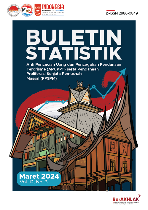 uletin Statistik APUPPT disusun secara periodik untuk menyampaikan hasil pelaksanaan tugas dan fungsi PPATK dalam upaya mencegah dan memberantas Tindak Pidana Pencucian Uang di Indonesia sebagaimana tercantum dalam Undang – Undang Nomor 8 tahun 2010 tentang Pencegahan dan Pemberantasan Tindak Pidana Pencucian Uang (selanjutnya disebut UU PP TPPU) serta Undang – Undang Nomor 9 tahun 2013 tentang Pencegahan dan Pemberantasan Tindak Pidana Pendanaan Terorisme (selanjutnya disebut UU PP TPPT). Dalam buletin ini, statistik yang dihimpun mencakup: 1. Perkembangan aktivitas pelaporan oleh Pihak Pelapor (Penyedia Jasa Keuangan/PJK, Penyedia Barang dan/atau Jasa Lain/PBJ, dan Profesi) serta Ditjen Bea Cukai; 2. Penyampaian Hasil Analisis dan Hasil Pemeriksaan kepada Aparat Penegak Hukum serta 3. Informasi lainnya yang terkait dengan pelaksanaan tugas PPATK. Hingga bulan Maret 2024, PPATK telah menyampaikan Hasil Analisis (selanjutnya disebut HA) kepada Penyidik sebanyak 158 HA dengan 66 HA Proaktif dan 92 HA Inquiry sementara untuk dugaan tindak pidana yang paling dominan adalah Tindak Pidana Korupsi (54 HA/34,2%) serta 2 Hasil Pemeriksaan (selanjutnya disebut HP). Sementara itu, selama bulan Maret 2024 pula, jumlah laporan yang diterima PPATK sebanyak 2.943.065 dan mengalami peningkatan dibandingkan dengan bulan sebelumnya sebesar 4,3%. Peningkatan tertinggi (dibandingkan dengan bulan Februari 2024) terjadi pada penerimaan LPT sebesar 63,2%.